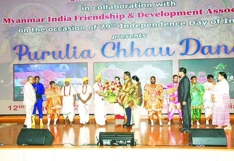 အိန္ဒိယသမ္မတနိုင်ငံ၏ (၇၉) နှစ်မြောက် လွတ်လပ်ရေးနေ့အထိမ်းအမှတ် ယဉ်ကျေးမှုဖျော်ဖြေပွဲနှင့် ဧည့်ခံပွဲအခမ်းအနားကို ယနေ့ညနေပိုင်းတွင် ရန်ကုန်မြို့ ရန်ကင်းမြို့နယ်ရှိ မြဝတီမီဒီယာစင်တာ၌ ကျင်းပရာ နိုင်ငံတော်သမ္မတရုံးဝန်ကြီးဌာန (၁) ပြည်ထောင်စုဝန်ကြီး ဦးတင်အောင်စန်းနှင့် ဇနီးတို့ တက်ရောက်ကြသည်။