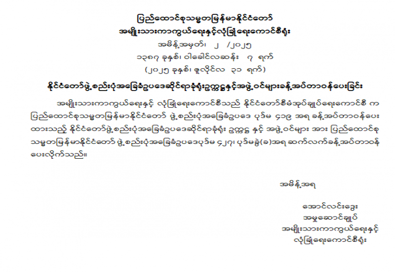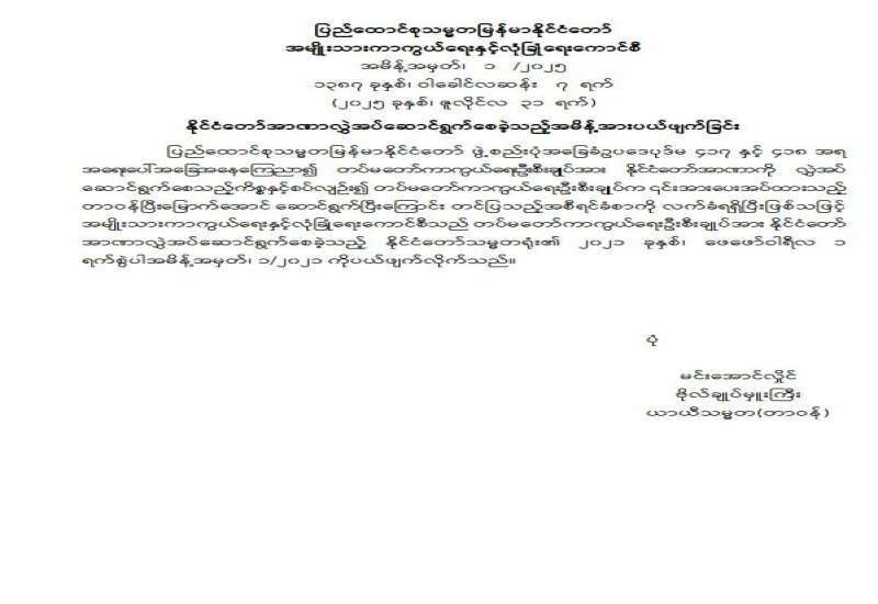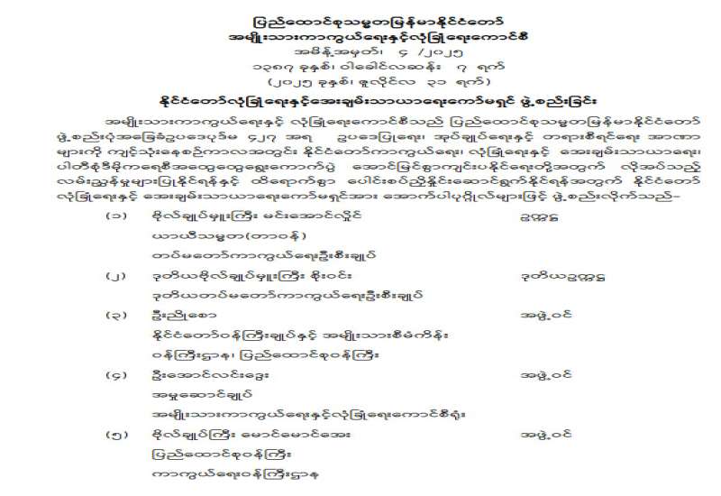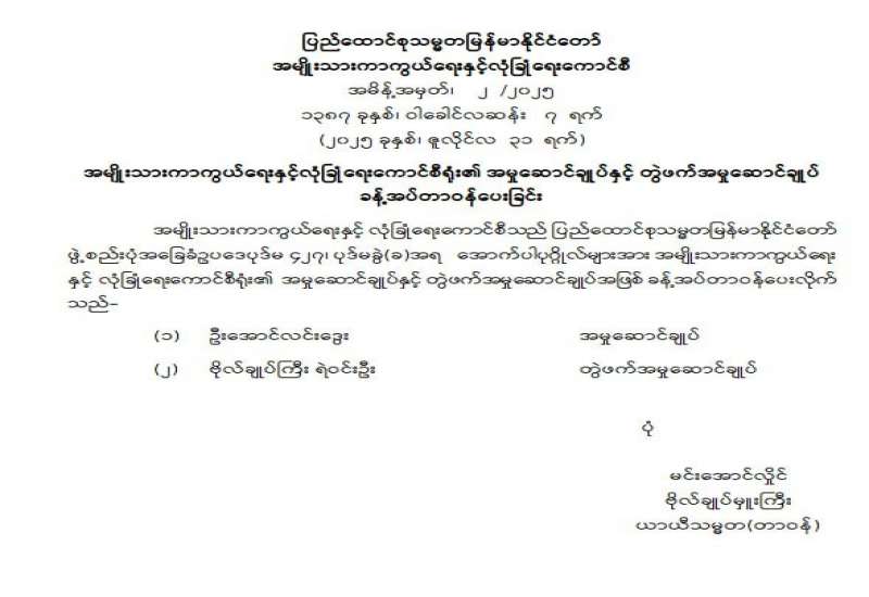 ပြည်ထောင်စုရွေးကောက်ပွဲကော်မရှင် ဥက္ကဋ္ဌနှင့် အဖွဲ့ဝင်များ ခန့်အပ်တာဝန်ပေးခြင်း