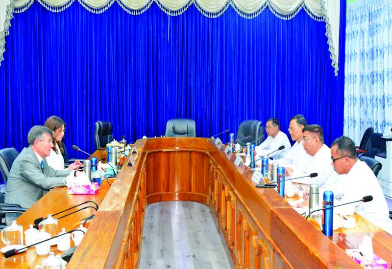 ပညာရေးဝန်ကြီးဌာန ပြည်ထောင်စုဝန်ကြီး ဒေါက်တာညွန့်ဖေသည် မြန်မာနိုင်ငံဆိုင်ရာ ရုရှားဖက်ဒရေးရှင်းနိုင်ငံ သံအမတ်ကြီး H.E Mr. Iskander Azizov အား ယနေ့မွန်းလွဲပိုင်းတွင် နေပြည်တော် ပညာရေးဝန်ကြီးဌာန ရုံးအမှတ် (၁၃) ရှိ အစည်းအဝေးခန်းမ၌ လက်ခံတွေ့ဆုံသည်။