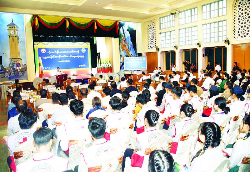 အလုပ်သမားဝန်ကြီးဌာန ဒုတိယဝန်ကြီး ဦးဝင်းရှိန်သည် ယနေ့တွင် ရန်ကုန်တိုင်းဒေသကြီး အလုပ်သမားရေးရာဌာနမှ တာဝန်ရှိသူများနှင့်အတူ ဒဂုံမြို့သစ် (မြောက်ပိုင်း) မြို့နယ်ရှိ ကျွမ်းကျင်မှုလေ့ကျင့်ရေးသင်တန်းကျောင်း၌ ကိုရီးယားဘာသာအရည်အချင်းစစ် (EPS) စာမေးပွဲအောင်မြင်သူများအား အလုပ်လျှောက်လွှာထုတ်ပေးနေမှုကို ကြည့်ရှုစစ်ဆေးသည်။