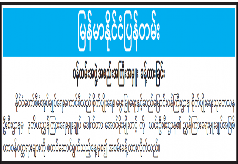 ပြည်သူများ၏ အဓိကလိုအပ်ချက်မှာ ကုန်ပစ္စည်းများသင့်တင့်မျှတသော ဈေးနှုန်းရှိစေရေး၊ ဈေးနှုန်းကွာဟမှုကြီးကြီးမားမားမရှိဘဲ တည်ငြိမ်မှုရှိစေရေးနှင့် စားသုံးကုန်ပစ္စည်းများ ဖူလုံပြည့်စုံမှုရှိစေရေးဖြစ်သည်။ နိုင်ငံတော်အစိုးရအနေဖြင့် ပြည်သူများစားရေရိက္ခာဖူလုံရေးနှင့် နိုင်ငံ၏ကုန်ထုတ်လုပ်မှုမြင့်မားတိုးတက်ရေးတို့ကို ဦးစားပေးဆောင်ရွက်နေသလို ကုန်စည်ဈေးနှုန်းများ တည်ငြိမ်မှုရှိစေရေးကိုလည်း အလေးထားဆောင်ရွက်ပေးလျက်ရှိသည်။