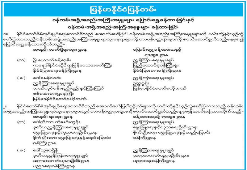 ဝန်ထမ်းအဖွဲ့အစည်းအကြီးအမှူးများ ပြောင်းရွှေ့ခန့်ထားခြင်းနှင့် ဝန်ထမ်းအဖွဲ့အစည်းအကြီးအမှူးများ ခန့်ထားခြင်း