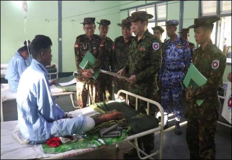 ရခိုင်ပြည်နယ်၊ ကျောက်ဖြူမြို့နယ်ရှိ နယ်မြေခံတပ်မတော်ဆေးရုံတွင် တက်ရောက်ဆေးကုသမှုခံယူလျက်ရှိသော အရာရှိ၊ စစ်သည်၊ မိသားစုဝင်များနှင့် မြန်မာနိုင်ငံရဲတပ်ဖွဲ့ဝင်များအား ယနေ့နံနက်ပိုင်းတွင် အနောက်ပိုင်းတိုင်းစစ်ဌာနချုပ် တိုင်းမှူး ဗိုလ်ချုပ်ကျော်စွာဦးနှင့် အဖွဲ့ဝင်များက သွားရောက်ကြည့်ရှု၍ တစ်ဦးချင်း၏ ရောဂါဖြစ်ပွားမှု၊ ဆေးဝါးကုသပေးထားမှုများနှင့် ကျန်းမာရေးတိုးတက်ကောင်းမွန်မှု အခြေအနေများအား ရင်းရင်းနှီးနှီး မေးမြန်းအားပေးစကားပြောကြားပြီး ဂုဏ်ပြုချီးမြှင့်ငွေများနှင့် စားသောက်ဖွယ်ရာများ ပေးအပ်သည်။