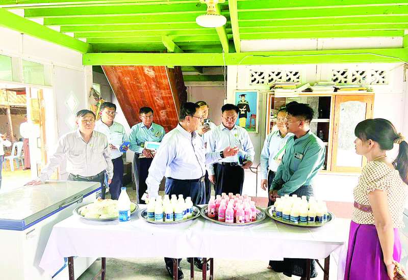 သမဝါယမနှင့်ကျေးလက်ဖွံ့ဖြိုးရေးဝန်ကြီးဌာန ပြည်ထောင်စုဝန်ကြီး ဦးလှမိုးသည် ယနေ့မွန်းလွဲပိုင်းက မန္တလေးတိုင်းဒေသကြီး မိတ္ထီလာခရိုင် မိတ္ထီလာမြို့နယ် မကျီးပင်ပုကျေးရွာ၌ မြစိမ်းရောင်ကျေးရွာစီမံကိန်းရန်ပုံငွေများဖြင့် အစုအဖွဲ့လေးဖွဲ့မှ နို့စားနွားမွေးမြူရေးလုပ်ငန်း ဆောင်ရွက်နေမှု အခြေအနေများကို ကြည့်ရှုစစ်ဆေးသည်။
