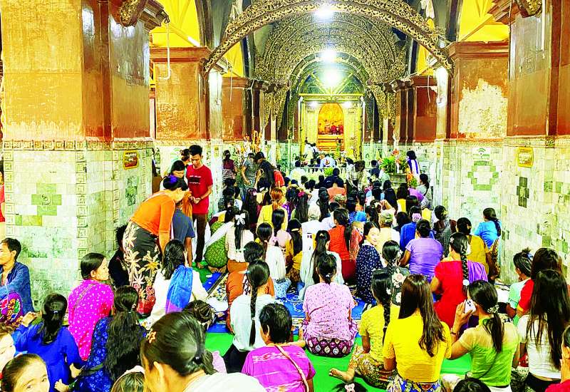ယနေ့သည် ဗုဒ္ဓဘာသာဝင်များ၏ နေ့ထူးနေ့မြတ် ဝါဆိုလပြည့်နေ့ (ဓမ္မစကြာအခါတော်နေ့) ဖြစ်သည့်အားလျော်စွာ ရွှေတိဂုံစေတီတော်မြတ်ကြီးအပါအဝင် ရန်ကုန်မြို့ရှိ ဘုရား၊ စေတီ၊ ပုထိုးများ၌ ဥပုသ်သီတင်းဆောက်တည်ကြသူများ၊ ကုသိုလ်ကောင်းမှုပြုကြသူ ဘုရားဖူးလာပြည်သူများဖြင့် အထူးစည်ကားလျက်ရှိသည်။