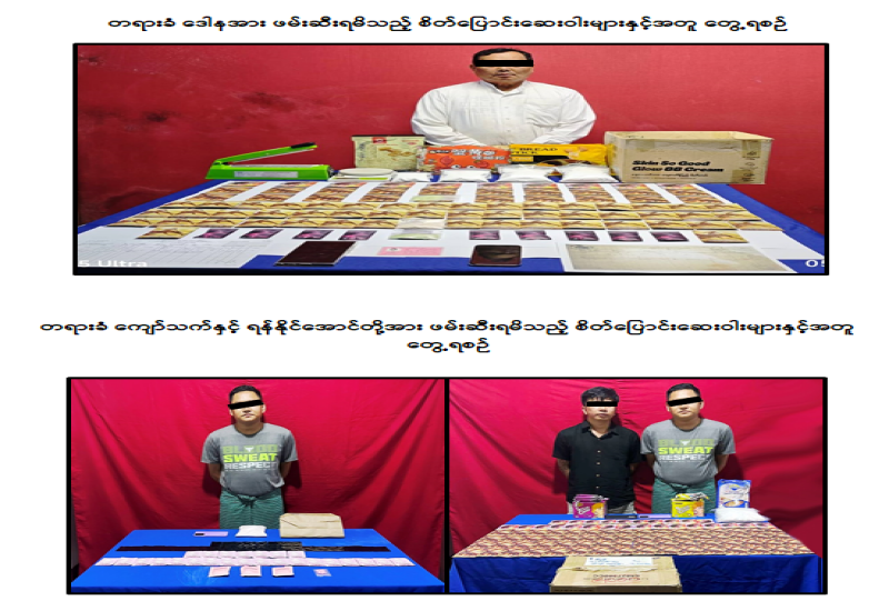 ထိုင်းနိုင်ငံအပါအဝင် အိမ်နီးချင်းနိုင်ငံအချို့ကို တစ်ဆင့်ခံဖြတ်သန်း၍ မြန်မာနိုင်ငံအတွင်းသို့ နယ်စပ်လမ်းကြောင်းများမှတစ်ဆင့် တရားမဝင်ဝင်ရောက်လာပြီး ကရင်ပြည်နယ်၊ မြဝတီမြို့-မဲ့ထော်သလေး(KK Park)နယ်မြေတွင် အွန်လိုင်းလောင်းကစားမှုများ၊ အွန်လိုင်းလိမ်လည်မှုများ ကျူးလွန်ခဲ့သည့် တရုတ်နိုင်ငံသူတစ်ဦးကို ယနေ့တွင် ထပ်မံစစ်ဆေးဖော်ထုတ်ထိန်းသိမ်းနိုင်ခဲ့သည်။