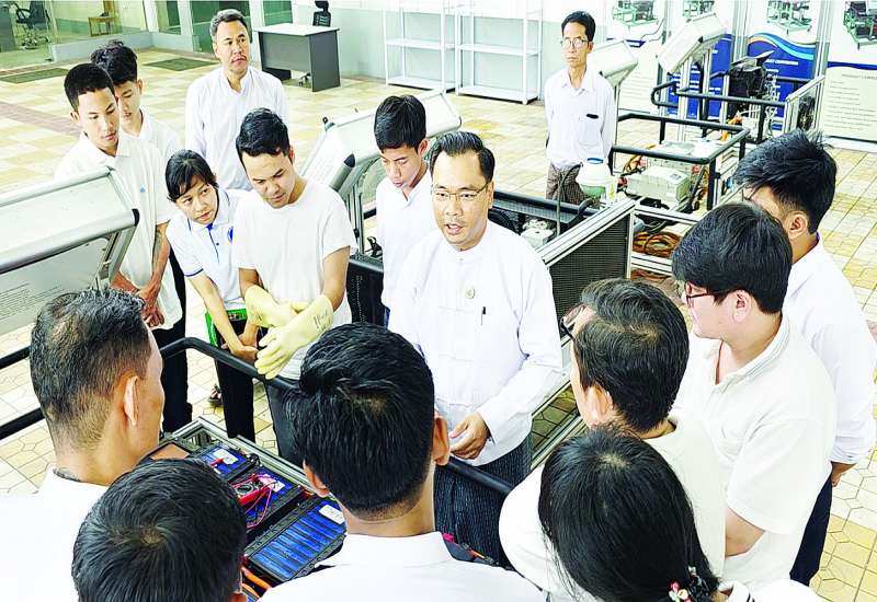 EV (Electric Vehicle) ပြုပြင်ထိန်းသိမ်းမှုသင်တန်း (၂/၂၀၂၅) ဖွင့်ပွဲအခမ်းအနားကို ယနေ့နံနက်ပိုင်းတွင် အစိုးရစက်မှုလက်မှုသိပ္ပံ(အင်းစိန်)၌ ကျင်းပသည်။