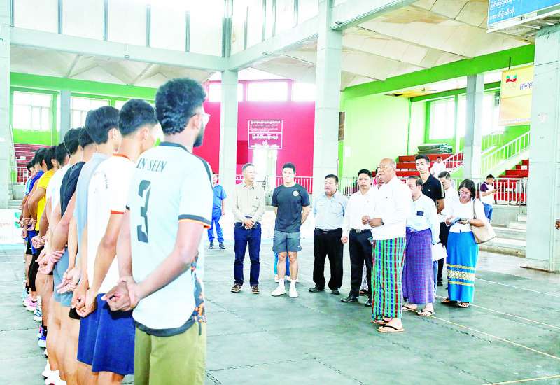 မြန်မာနိုင်ငံအိုလံပစ်ကော်မတီဥက္ကဋ္ဌ အားကစားနှင့်လူငယ်ရေးရာဝန်ကြီးဌာန ပြည်ထောင်စုဝန်ကြီး Jeng Phang နော်တောင်သည် ယနေ့နံနက်ပိုင်းတွင် ရန်ကုန်မြို့ မင်္ဂလာတောင်ညွန့်မြို့နယ် အောင်ဆန်းအားကစားပြိုင်ဝင်းအတွင်းရှိ မိုးလုံလေလုံအားကစားရုံသို့ ရောက်ရှိပြီး အားကစားသမားများကို ရင်းရင်းနှီးနှီးနှုတ်ဆက်ကာ မြန်မာ့ဘော်လီဘောအားကစားနည်း ပြန်လည်အောင်မြင်လာအောင် ကြိုးစားပြီး နိုင်ငံတော်အတွက် ကျရာအခန်းကဏ္ဍမှ တစ်တပ်တစ်အားပါဝင်ကူညီရန်မှာကြား၍ ပဏာမလက်ရွေးစင်ဘော်လီဘောအားကစားသမားများ လေ့ကျင့်နေမှုကို ကြည့်ရှုအားပေးသည်။