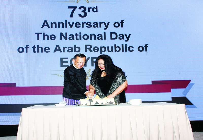 အီဂျစ်အာရပ်သမ္မတနိုင်ငံ၏ (၇၃)ကြိမ်မြောက် အမျိုးသားနေ့အထိမ်းအမှတ် ဧည့်ခံပွဲအခမ်းအနားကို ယနေ့ည ၇ နာရီတွင် ရန်ကုန်မြို့ Melia Hotel ၌ ကျင်းပရာ ရင်းနှီးမြှုပ်နှံမှုနှင့်နိုင်ငံခြားစီးပွားဆက်သွယ်ရေးဝန်ကြီးဌာန ပြည်ထောင်စုဝန်ကြီး ဒေါက်တာကံဇော် တက်ရောက်သည်။