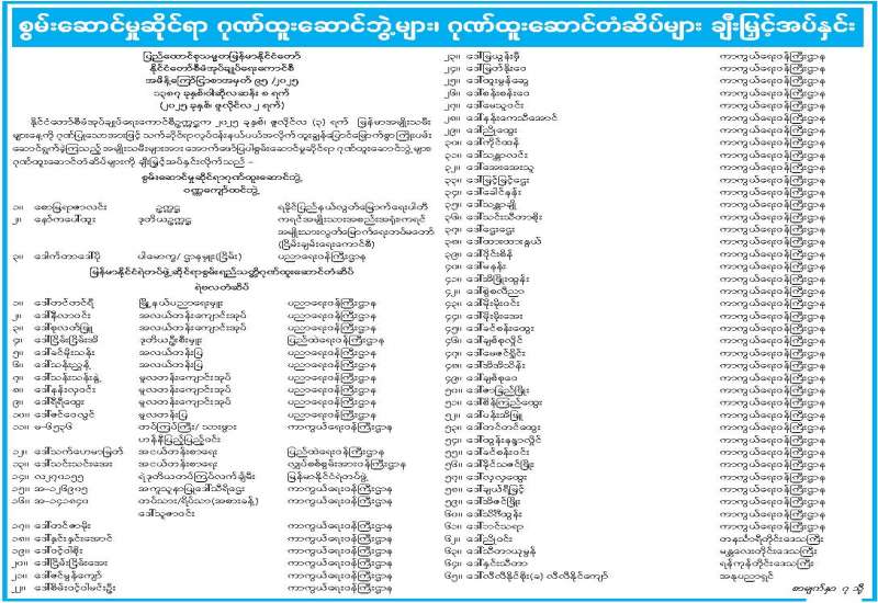 ရန်ကုန်တိုင်းဒေသကြီး၊ လှိုင်သာယာ(အရှေ့ပိုင်း)မြို့မရဲစခန်း၌ အကြမ်းဖက်မှုတိုက်ဖျက်ရေးဥပဒေပုဒ်မ ၅၀(ည)ဖြင့် ဖမ်းဆီးထားသည့် အချုပ်တရားခံ ဇွန်ပွင့်လှိုင်(၃၀)နှစ်၊ (ဘ) ဦးလှမင်းအား ရဲတပ်ဖွဲ့မှ လုံခြုံရေးတာဝန်ရှိသူများက၂၀၂၅ ခုနှစ်၊ ဇူလိုင် ၁ ရက် ညပိုင်းတွင် ကျောက်ကပ်ရောဂါအရေးပေါ်ကုသရန် အမှတ်(၅)ရပ်ကွက်၊ ဗိုလ်ချုပ်လမ်းရှိ သပြေအထူးကုဆေးခန်းသို့ ပို့ဆောင်ပေးပြီးအပြန် လှိုင်သာယာ(အရှေ့ပိုင်း)မြို့နယ်ရှိ Ocean Center သို့ ဝင်ရောက်ဆေးဝယ်ကာ ပြန်ထွက်လာစဉ် ကားပါကင်အနီးသို့အရောက်၌ PDF အမည်ခံ အကြမ်းဖက်သမားများက လက်နက်ငယ်များဖြင့် စောင့်ကြိုပစ်ခတ်ခဲ့ရာ ဆေးခန်းသို့လိုက်ပါပို့ဆောင်သည့် ရဲတပ်ဖွဲ့ဝင်များအား လက်နက်ငယ်ကျည်များထိမှန်၍ ထိခိုက်မှုများဖြစ်ပေါ်ခဲ့ပြီး အချုပ်တရားခံ ဇွန်ပွင့်လှိုင်အား ခေါ်ဆောင်ထွက်ပြေးသွားကြောင်း သိရှိရသည်။