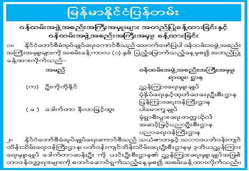 ဝန်ထမ်းအဖွဲ့အစည်းအကြီးအမှူးများ အတည်ပြုခန့်ထားခြင်းနှင့် ဝန်ထမ်းအဖွဲ့အစည်းအကြီးအမှူး ခန့်ထားခြင်း