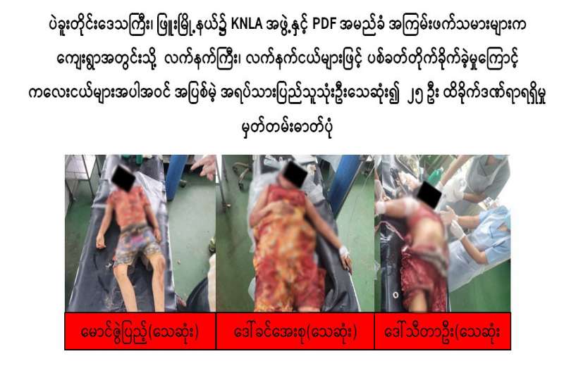 အကြမ်းဖက်သမားများသည် အေးချမ်းစွာနေထိုင်လျက်ရှိသော ပြည်သူများ ထိခိုက်ဒဏ်ရာရရှိစေရန်၊ သေကြေပျက်စီးစေရန်နှင့် အကြောက်တရားများလွှမ်းမိုးစေရန် ရည်ရွယ်ချက်များဖြင့် ဖမ်းဆီးသတ်ဖြတ်ခြင်း၊ ရပ်ကွက်/ကျေးရွာများအတွင်းသို့ လက်နက်ကြီး၊ လက်နက်ငယ်များ၊ Drone ဖြင့် Drop Bomb များ ပစ်ချတိုက်ခိုက်ခြင်းများနှင့် အများပြည်သူ သွားလာအသုံးပြုနေသည့် လမ်းများပေါ်၌ မိုင်းထောင်ခြင်း၊ ဖောက်ခွဲဖျက်ဆီးခြင်းများအား ဆင်ခြင်တုံတရားကင်းမဲ့စွာ ပြုလုပ်လျက်ရှိသည်။