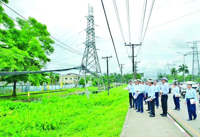 လျှပ်စစ်စွမ်းအားဝန်ကြီးဌာန ပြည်ထောင်စုဝန်ကြီး ဦးဉာဏ်ထွန်းသည် ဌာနဆိုင်ရာတာဝန်ရှိသူများနှင့်အတူ ဇွန် ၂၈ ရက် နံနက်ပိုင်းတွင် လှိုင်သာယာမြို့နယ်ရှိ ရန်ကုန်-ပုသိမ် လမ်းမကြီးနှင့် ရန်ကုန်-ညောင်တုန်းလမ်းမကြီး အဆင့်မြှင့်တင်ခြင်းလုပ်ငန်းများဆောင်ရွက်ရာတွင် လမ်းနယ်နှင့် မလွတ်ကင်းသော လျှပ်စစ်ဓာတ်အားလိုင်းတိုင်များ ရွှေ့ပြောင်းတည်ဆောက်မည့်အခြေအနေ၊ ၂၃၀ ကေဗွီ လှိုင်သာယာပင်မဓာတ်အားခွဲရုံ၏ ဓာတ်အားပို့လွှတ်ဖြန့်ဖြူးပေးနေမှုနှင့် ယနေ့နံနက်ပိုင်းတွင် ဥတိုနေရောင်ခြည်စွမ်းအင်သုံး လျှပ်စစ်ဓာတ်အားထုတ်လုပ် ရေးနှင့် စိုက်ပျိုးမွေးမြူရေးပေါင်းစပ်စီမံကိန်းတို့ကို ကြည့်ရှုစစ်ဆေးသည်။