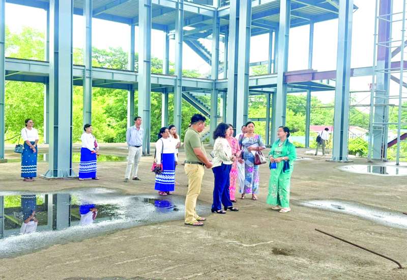 သာသနာရေးနှင့်ယဉ်ကျေးမှုဝန်ကြီးဌာန ဒုတိယဝန်ကြီး ဒေါ်နုမြဇံသည် ယနေ့နံနက်ပိုင်းတွင် ရန်ကုန်တိုင်းဒေသကြီး အင်းစိန်မြို့နယ် မင်းဓမ္မလမ်းပေါ်ရှိ အကျယ်အဝန်း ၇ ဒသမ ၄၁ ဧက ပေါ်၌ နိုင်ငံတကာအဆင့်မီ အနုပညာဗဟိုဌာန (Myanmar Arts Center) တည်ဆောက်ရေး လုပ်ငန်းများကို ကြည့်ရှုစစ်ဆေးရာ Myanmar Land and Development Limited ဆောက်လုပ်ရေးကုမ္ပဏီမှ Project Director က လုပ်ငန်းခုနစ်ခု၏ဆောင်ရွက်မှုနှင့် လုပ်ငန်းပြီးစီးမှုအခြေအနေများကို ရှင်းလင်းတင်ပြသည်။