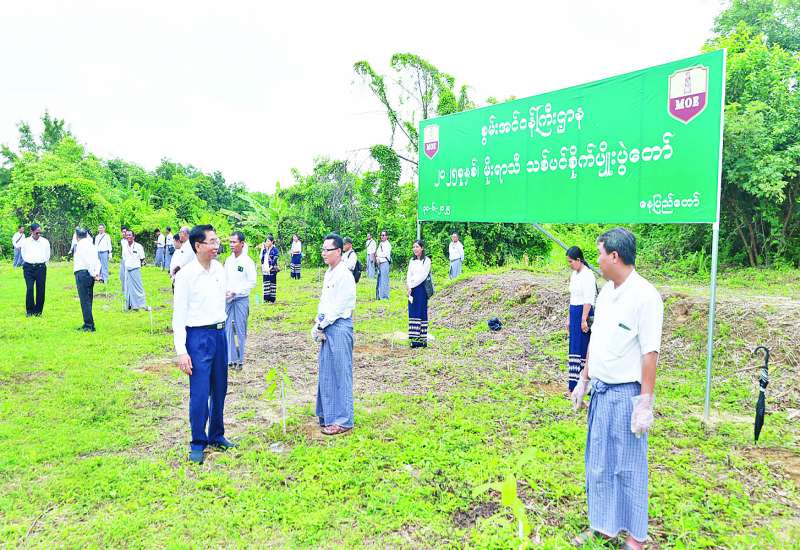 ဥပဒေရေးရာဝန်ကြီးဌာန၏ ၂၀၂၅ ခုနှစ် မိုးရာသီသစ်ပင်စိုက်ပျိုးပွဲကို ယနေ့နံနက်ပိုင်းတွင် ရုံးအမှတ်(၂၅) ဥပဒေရေးရာဝန်ကြီးဌာန၏ အဝင်လမ်းပရိဝုဏ်အတွင်း ကျင်းပရာ သတ်မှတ်နေရာတွင် ပြည်ထောင်စုဝန်ကြီးနှင့် ပြည်ထောင်စုရှေ့နေချုပ် ဒေါက်တာသီတာဦးက ပိတောက်ပင်ကို လည်းကောင်း၊ ဒုတိယဝန်ကြီးနှင့် ဒုတိယရှေ့နေချုပ်နှင့် ညွှန်ကြားရေးမှူးချုပ်များက ကံ့ကော်ပင်များကိုလည်းကောင်း စိုက်ပျိုးကြသည်။
