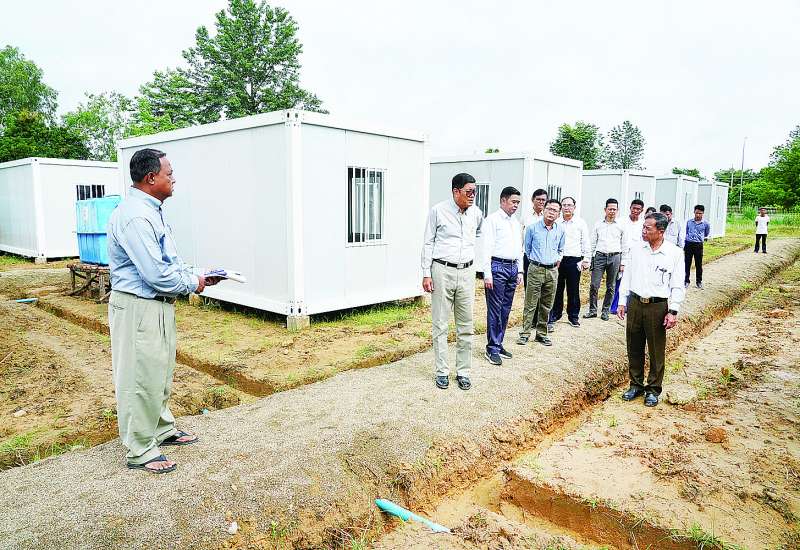 ဟိုတယ်နှင့် ခရီးသွားလာရေး ဝန်ကြီးဌာန ပြည်ထောင်စုဝန်ကြီး ဦးကျော်စိုးဝင်းသည် ဒုတိယဝန်ကြီး ဦးဖြိုးဇော်စိုး၊ တာဝန်ရှိသူများနှင့်အတူ ယနေ့နံနက်ပိုင်းတွင် ဒက္ခိဏသီရိမြို့နယ်အတွင်းရှိ နေပြည်တော် ဟိုတယ်ဆိုင်ရာလုပ်ငန်းရှင်များအသင်း ရုံးဝင်းအတွင်း၌ ဝန်ကြီးဌာနမှ ငလျင်ဘေးသင့်ဝန်ထမ်းများနှင့် မိသားစုဝင်များ ယာယီနေထိုင်နိုင်ရန်အတွက် အမျိုးသားသဘာဝဘေးအန္တရာယ်ဆိုင်ရာ စီမံခန့်ခွဲမှုကော်မတီက ခွဲဝေချထားပေးသည့် အိပ်ခန်းတစ်ခန်းပါ Container House များ တပ်ဆင်တည်ဆောက်ပြီးစီးမှု၊ ဝန်ထမ်းများနှင့် မိသားစုဝင်များအား Container House များသို့ ပြောင်းရွှေ့နေရာချထားပေးနေမှုကို ကြည့်ရှုစစ်ဆေးသည်။