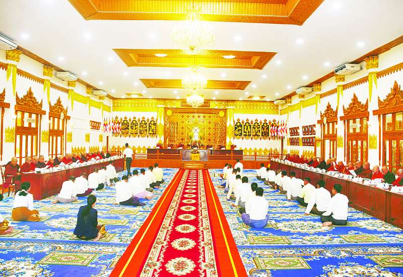 နဝမအကြိမ် နိုင်ငံတော်သံဃမဟာနာယကအဖွဲ့ (၄၇) ပါးစုံညီ ဒုတိယအစည်းအဝေး ဒုတိယနေ့ကို ယနေ့နံနက် ၈ နာရီတွင် ရန်ကုန်မြို့ သီရိမင်္ဂလာကမ္ဘာအေးကုန်းမြေ ဝိဇယမင်္ဂလာဓမ္မသဘင်၌ ဆက်လက်ကျင်းပရာ နိုင်ငံတော်သံဃမဟာနာယကအဖွဲ့ဥက္ကဋ္ဌ သန်လျင်မြို့ မင်းကျောင်းပထမပြန်စာသင်တိုက် ပဓာနနာယကဆရာတော် အဂ္ဂမဟာပဏ္ဍိတ အဂ္ဂမဟာသဒ္ဓမ္မဇောတိကဓဇ ဒေါက်တာဘဒ္ဒန္တစန္ဒိမာဘိဝံသ အမှူးပြုသည့် နိုင်ငံတော်သံဃမဟာနာယကအဖွဲ့ ဆရာတော်ကြီးများ ကြွရောက်တော်မူကြပြီး သာသနာရေးနှင့်ယဉ်ကျေးမှုဝန်ကြီးဌာန ပြည်ထောင်စုဝန်ကြီး ဦးတင်ဦးလွင်နှင့် ဌာနဆိုင်ရာတာဝန်ရှိသူများ၊ တိုင်းဒေသကြီးနှင့် ပြည်နယ်သာသနာရေးမှူးများ တက်ရောက်ကြည်ညိုကြသည်။