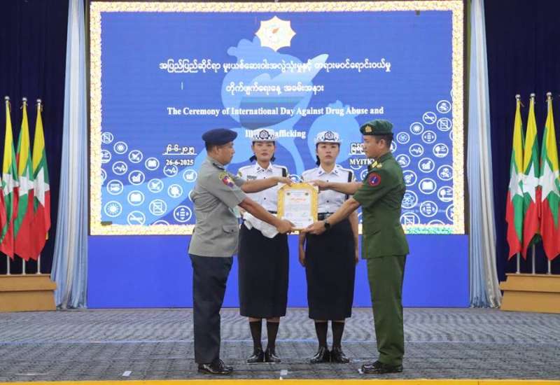 အပြည်ပြည်ဆိုင်ရာ မူးယစ်ဆေးဝါးအလွဲသုံးမှုနှင့် တရားမဝင်ရောင်းဝယ်မှုတိုက်ဖျက်ရေးနေ့ အထိမ်းအမှတ်အခမ်းအနားများကို ယနေ့တွင် နေပြည်တော်ကောင်စီနယ်မြေ၊ တိုင်းဒေသကြီး/ ပြည်နယ်များတွင် ကျင်းပပြီး တောင်ကြီး၊ ရန်ကုန်နှင့် မန္တလေးမြို့တို့တွင် တစ်နှစ်တာကာလအတွင်း ဖမ်းဆီးရမိမူးယစ်ဆေးဝါးများ၊ ဓာတုပစ္စည်းများ ဖျက်ဆီးခြင်းကို ကျန်းမာရေးဝန်ကြီးဌာနမှ ထုတ်ပြန်ထားသည့် ကိုဗစ်-၁၉ ရောဂါဆိုင်ရာ ညွှန်ကြားချက်များနှင့်အညီ ကျင်းပကာ မူးယစ်ဆေးဝါးတားဆီးနှိမ်နင်းရေးလုပ်ငန်းများတွင် ထူးချွန်စွာ စွမ်းစွမ်းတမံဆောင်ရွက်ခဲ့ကြသူများကို ဆုများချီးမြှင့်ကြသည်။