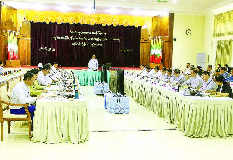 တိုင်းဒေသကြီး/ ပြည်နယ်အစိုးရများ၏ အခွန်ရငွေတိုးတက်ရရှိစေရေး လုပ်ငန်းညှိနှိုင်းအစည်းအဝေးကို ယနေ့မွန်းလွဲပိုင်းတွင် စီမံကိန်းနှင့်ဘဏ္ဍာရေးဝန်ကြီးဌာန ရုံးအမှတ် (၃၂) အစည်းအဝေးခန်းမ၌ကျင်းပရာ ဒုတိယဝန်ကြီးချုပ်နှင့် စီမံကိန်းနှင့်ဘဏ္ဍာရေးဝန်ကြီးဌာန ပြည်ထောင်စုဝန်ကြီး ဦးဝင်းရှိန်၊ နေပြည်တော်စည်ပင်သာယာရေးကော်မတီဥက္ကဋ္ဌ၊ ရန်ကုန်မြို့တော်စည်ပင်သာယာရေးကော်မတီဥက္ကဋ္ဌ၊ မန္တလေးတိုင်းဒေသကြီး သယံဇာတရေးရာဝန်ကြီး၊ စီမံကိန်းနှင့်ဘဏ္ဍာရေးဝန်ကြီးဌာန ဒုတိယဝန်ကြီး ဦးမင်းထွဋ်၊ တိုင်းဒေသကြီး/ ပြည်နယ်အစိုးရအဖွဲ့များမှ စီးပွားရေးရာဝန်ကြီးများနှင့် တာဝန်ရှိသူများ တက်ရောက်ကြသည်။