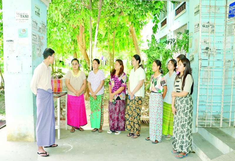 သမဝါယမနှင့်ကျေးလက်ဖွံ့ဖြိုးရေးဝန်ကြီးဌာန ဒုတိယဝန်ကြီး ဦးမြင့်စိုးသည် တာဝန်ရှိသူများနှင့်အတူ ယနေ့မွန်းလွဲပိုင်းတွင် အပြာရောင်အဆင့်သတ်မှတ်ချက်ဖြင့် ဝန်ထမ်းများ ပြန်လည်နေထိုင်လျက်ရှိသော ဝန်ထမ်းအဆောင်များ အခြေအနေကို လှည့်လည်ကြည့်ရှုစစ်ဆေးသည်။