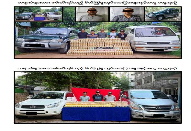 မူးယစ်ဆေးဝါးတားဆီးနှိမ်နင်းရေးရဲတပ်ဖွဲ့မှ တပ်ဖွဲ့ဝင်များပါဝင်သော ပူးပေါင်းအဖွဲ့သည် ဇွန်လ ၄ ရက်နေ့ မွန်းလွဲ ၁၂၃၀ အချိန် ပြည်-အောင်လံသွား ကားလမ်းရှိ တိုးဂိတ်အနီး၌ မူးယစ်ဆေးဝါးများ အရောင်းအဝယ်ပြုလုပ်မည်ဖြစ်ကြောင်း သတင်းအရစောင့်ဆိုင်းနေစဉ် အောင်ဇော်ဦး မောင်းနှင်သည့် TOYOTA PRADO မော်တော်ယာဉ်ပေါ်မှ ဘိုဘိုအောင် မောင်းနှင်ပြီး ဇင်သူအောင်၊ အောင်ပြည့်ဖြိုးတို့ လိုက်ပါလာသည့် I-ZONE မော်တော်ယာဉ်ပေါ်သို့ လွှဲပြောင်းတင်ဆောင်နေစဉ် ရှာဖွေစစ်ဆေးခဲ့ရာ ၎င်းတို့ ၄ ဦးနှင့်အတူ စိတ်ကြွရူးသွပ်ဆေးပြား ၅ သိန်းပြားအား ဖမ်းဆီးရမိခဲ့ကြောင်း၊