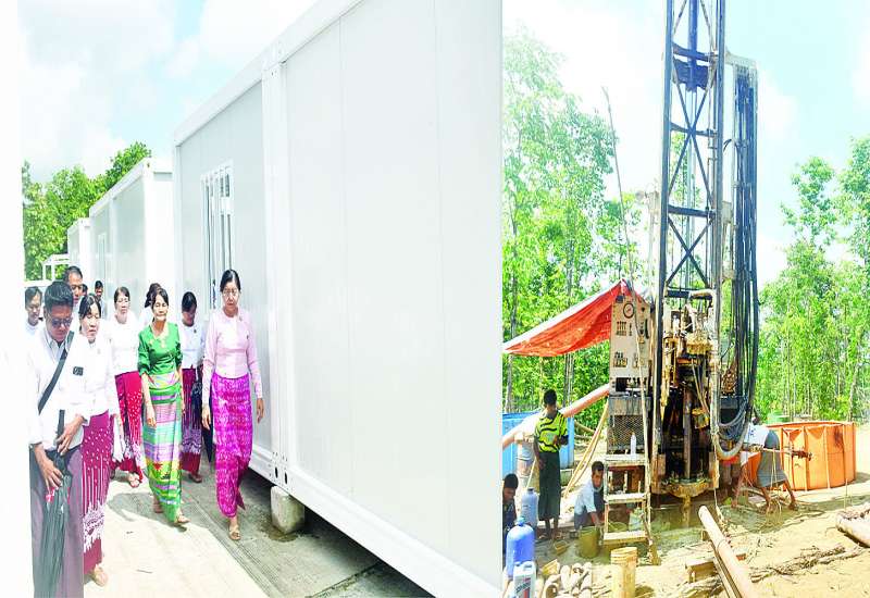 ပြည်ထောင်စုစာရင်းစစ်ချုပ် ဒေါက်တာခင်နိုင်ဦးသည် ဒုတိယစာရင်းစစ်ချုပ် ဒေါ်နိုင်သက်ဦး၊ တာဝန်ရှိသူများနှင့်အတူ ယနေ့နံနက်ပိုင်းတွင် ပြည်ထောင်စုစာရင်းစစ်ချုပ်ရုံးမှ ငလျင်ဘေးသင့်ဝန်ထမ်းနှင့် မိသားစုဝင်များနေထိုင်ရေး အဆင်ပြေစေရန်အတွက် အမျိုးသားသဘာဝဘေးအန္တရာယ်ဆိုင်ရာ စီမံခန့်ခွဲမှုကော်မတီကခွဲဝေချထားပေးသည့် အိပ်ခန်းတစ်ခန်းနှင့် အိပ်ခန်းနှစ်ခန်းပါ Container House များ ပြည်ထောင်စုစာရင်းစစ်ချုပ် ရုံးဝင်းအတွင်း တပ်ဆင်ပြီးစီးမှုနှင့် ရေရရှိရေးစီမံဆောင်ရွက်မှု အခြေအနေများကို လှည့်လည် ကြည့်ရှုစစ်ဆေးသည်။