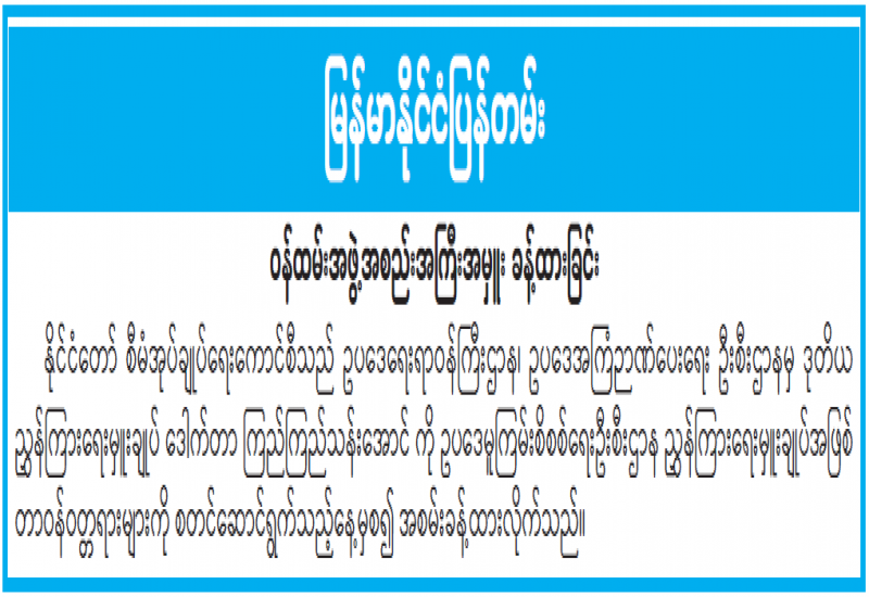 ရန်ကုန်မြို့နှင့် မန္တလေးမြို့အတွက် ရည်ညွှန်းလက်ကားဈေးနှုန်းများနှင့် ပြည်ထောင်စုနယ်မြေ နေပြည်တော်၊ တိုင်းဒေသကြီး/ပြည်နယ် မြို့တော်များအတွက် ရည်ညွှန်းလက်လီဈေးနှုန်းများ
