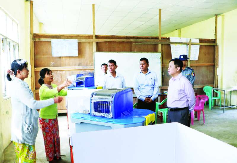 မြေပြင်ကွင်းဆင်းစာရင်းကောက်ယူရေးကြီးကြပ်မှုဗဟိုကော်မတီဥက္ကဋ္ဌ၊ လူဝင်မှုကြီးကြပ်ရေးနှင့် ပြည်သူ့အင်အားဝန်ကြီးဌာန ပြည်ထောင်စုဝန်ကြီးဦးမြင့်ကြိုင်သည် တာဝန်ရှိသူများနှင့်အတူ ယမန်နေ့ မွန်းလွဲပိုင်းက ဧရာဝတီတိုင်းဒေသကြီး ဝါးခယ်မမြို့နယ် ကျုံမငေးမြို့ နဒီအောင်မြေရပ်ကွက်ရှိ မဲရုံအမှတ် (၁) သို့ သွားရောက်၍ ဇန်နဝါရီ ၁၁ ရက်တွင် ပါတီစုံဒီမိုကရေစီအထွေထွေရွေးကောက်ပွဲ အပိုင်း (၂) ကျင်းပနိုင်ရေး မဲရုံလုပ်ငန်းစဉ်များ ဆောင်ရွက်ထားရှိမှုအခြေအနေကို ကြည့်ရှုစစ်ဆေးသည်။