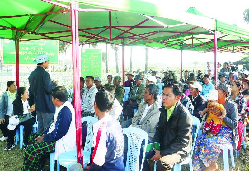 နေပြည်တော်ကောင်စီ နယ်မြေတပ်ကုန်းမြို့နယ်၌ ဆောင်းသီးနှံဟင်းသီးဟင်းရွက်စိုက်ခင်းများ ဖြစ်ထွန်းအောင်မြင်လျက်ရှိရာ ဇန်နဝါရီ ၈ ရက်က စိုက်ပျိုးရေးတက္ကသိုလ်၊ စိုက်ပျိုးရေးသုတေသနနှင့် မွေးမြူရေးတက္ကသိုလ်မှ ပညာရှင်များက နွယ်ရစ်ကျေးရွာ တောင်သူ ဦးဆန်းမင်း၏ ပန်းမုန်လာစိမ်းစိုက်ခင်းတွင် ကွင်းသရုပ်ပြပွဲကျင်းပသည်။