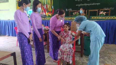မိုင်းယောင်းမြို့နယ်၌ အသက် ၅ နှစ်မှ ၁၂ နှစ်အတွင်းရှိ ကျောင်းသား/သူများအား ကိုဗစ်-၁၉ ရောဂါကာကွယ်ဆေးထိုးနှံပေး