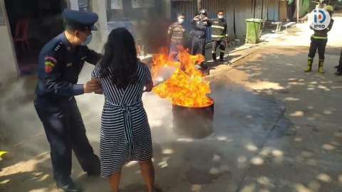 ပြည်မြို့စည်ပင်သာယာဈေးများတွင် မီးဘေးအန္တရာယ်ကြိုတင်ကာကွယ်ရေး မီးငြှိမ်းသတ်နည်းလက်တွေ့ဇာတ်တိုက်လေ့ကျင့်