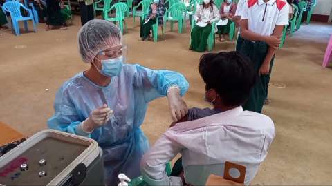 ချောင်းဦးမြို့နယ်တွင် အသက်၁၂နှစ်နှင့်အထက် ကျောင်းသား/သူများအား ကိုဗစ်-၁၉ ရောဂါ ကာကွယ်ဆေးစတင်ထိုးနှံ