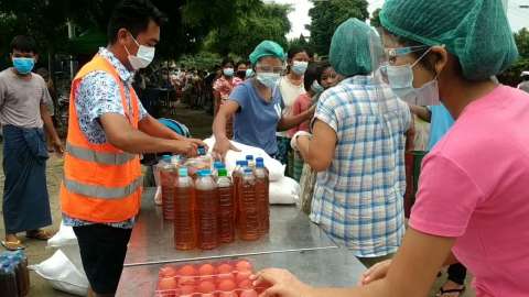 မိတ္ထီလာ၌ ကိုဗစ်-၁၉ ကာလပုံမှန်ဝင်ငွေမရှိသောအိမ်ထောင်စု၇၀၀အား အခြေခံစားသောက်ကုန်များ ထောက်ပံ့လှူဒါန်း