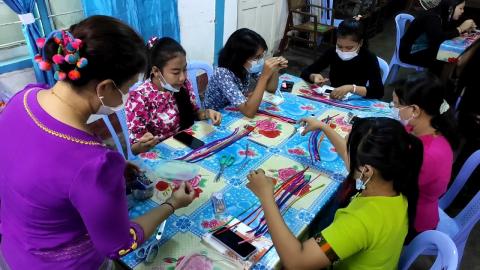 သင်္ဃန်းကျွန်းမြို့နယ် လူထုအခြေပြုဗဟိုဌာန (Community Centre) ခန်းမတွင် ပန်းကြယ်သီးထိုးနည်း သင်တန်းဖွင့်လှစ်